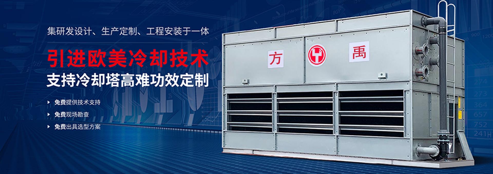 方禹技術研發團隊十多年深耕冷卻塔領域,引進德國/美國/臺灣生產工藝,對原生產的各型冷卻塔進行全新升級換代,研發團隊可根據現場實際工況需求,自主開發定制與主機性能匹配的冷卻設備,確保產品性能達標。